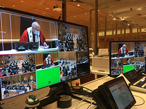En France, tout enregistrement visuel ou sonore des audiences publiques est interdit. Les seules images possibles de l’intérieur des tribunaux sont celles des dessinateurs de presse judiciaire . Néanmoins une loi de 1985 permet de déroger à cette règle si le procès « présente un intérêt pour la constitution d’archives historiques de la justice ».